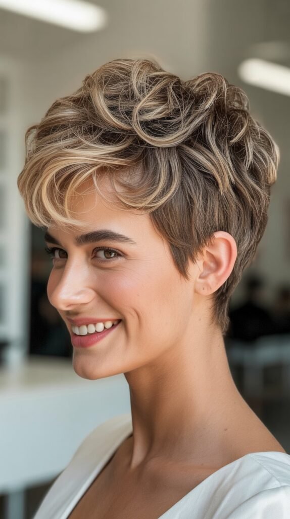 - Date Nights: Slightly more defined waves using small-barrel curling iron on select sections, combined with subtle volume at the crown, creates romantic softness while maintaining pixie edge.