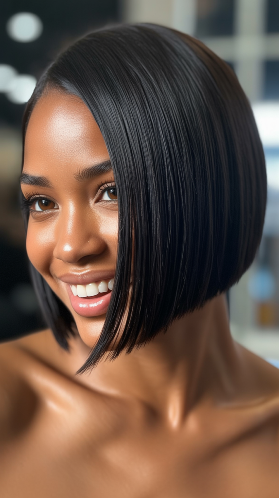 An asymmetrical bob features one side longer than the other, creating dramatic visual interest. This bold choice showcases personality and fashion-forward thinking.
