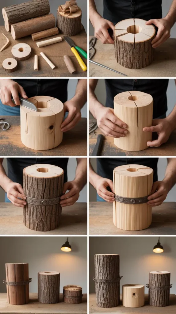 - Log slice holders with drilled cavities for tea lights or votives showcase natural wood beauty