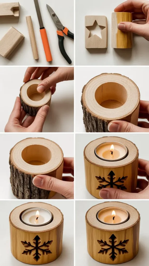 Wooden candle holders blend functionality with festive decoration, creating products that customers use throughout the holiday season.