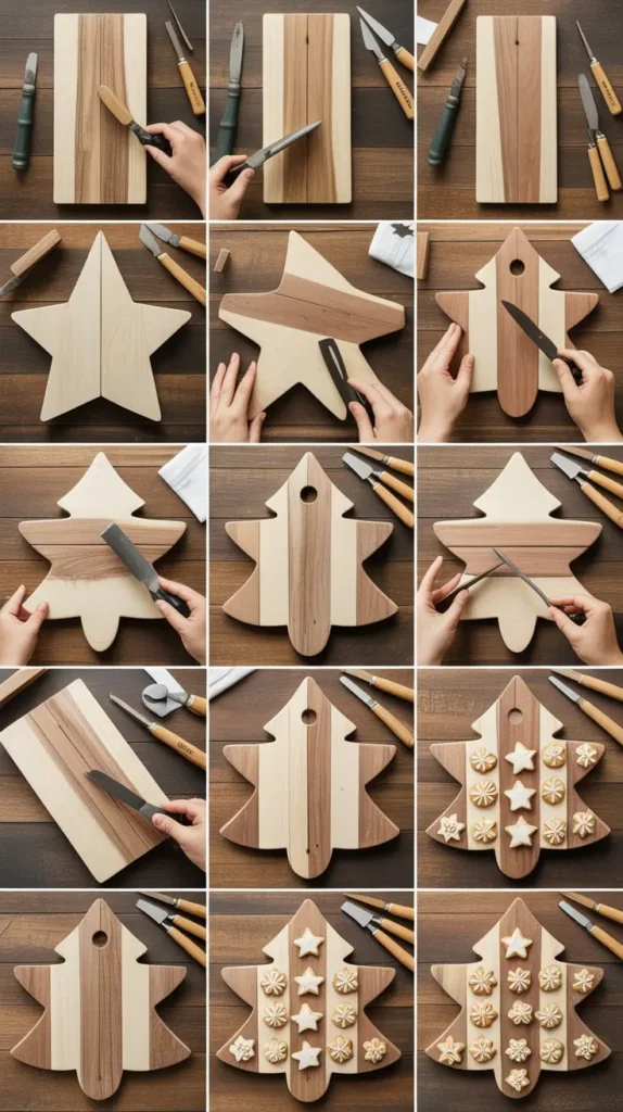 - Rectangular boards with Christmas-themed burned or carved borders work for multiple uses