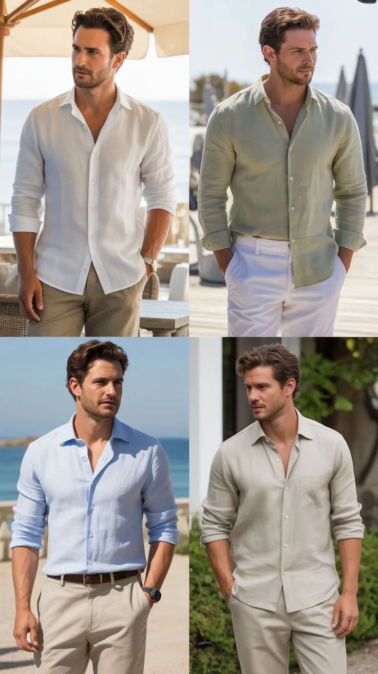 - Choose a lightweight cotton button-up shirt for breathability and comfort.