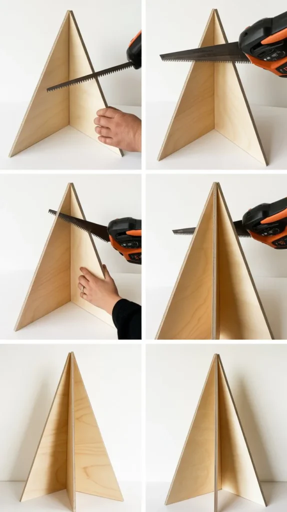 - Create a sturdy frame from 2×4 lumber cut into a triangular support structure.