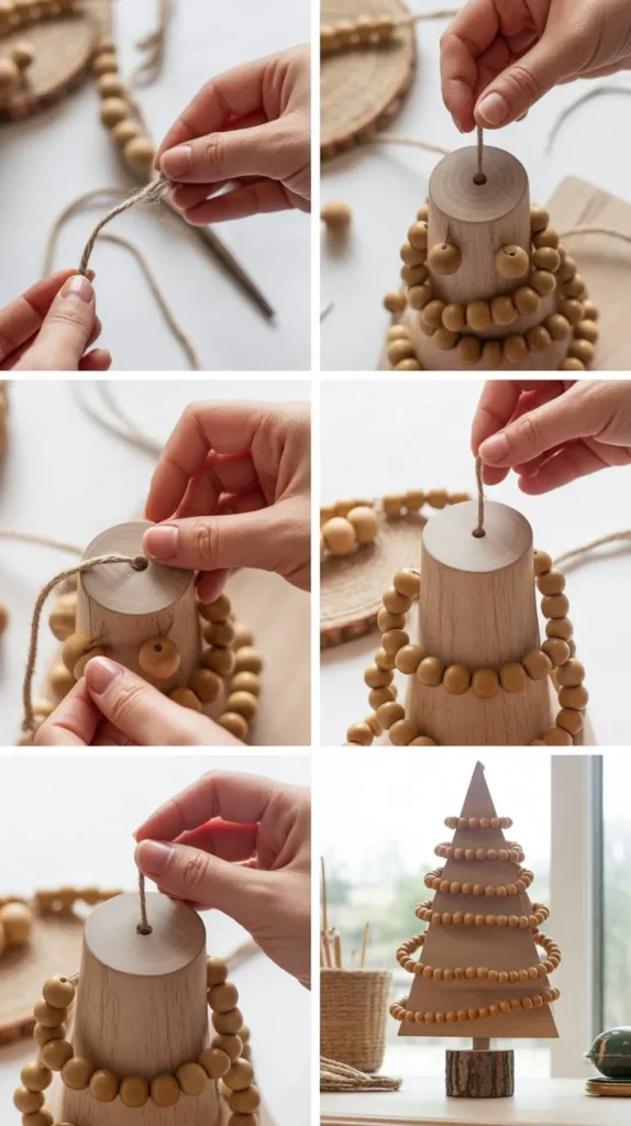 - Hang minimalist ornaments like glass balls, copper geometric shapes, or wooden beads at the dowel ends.